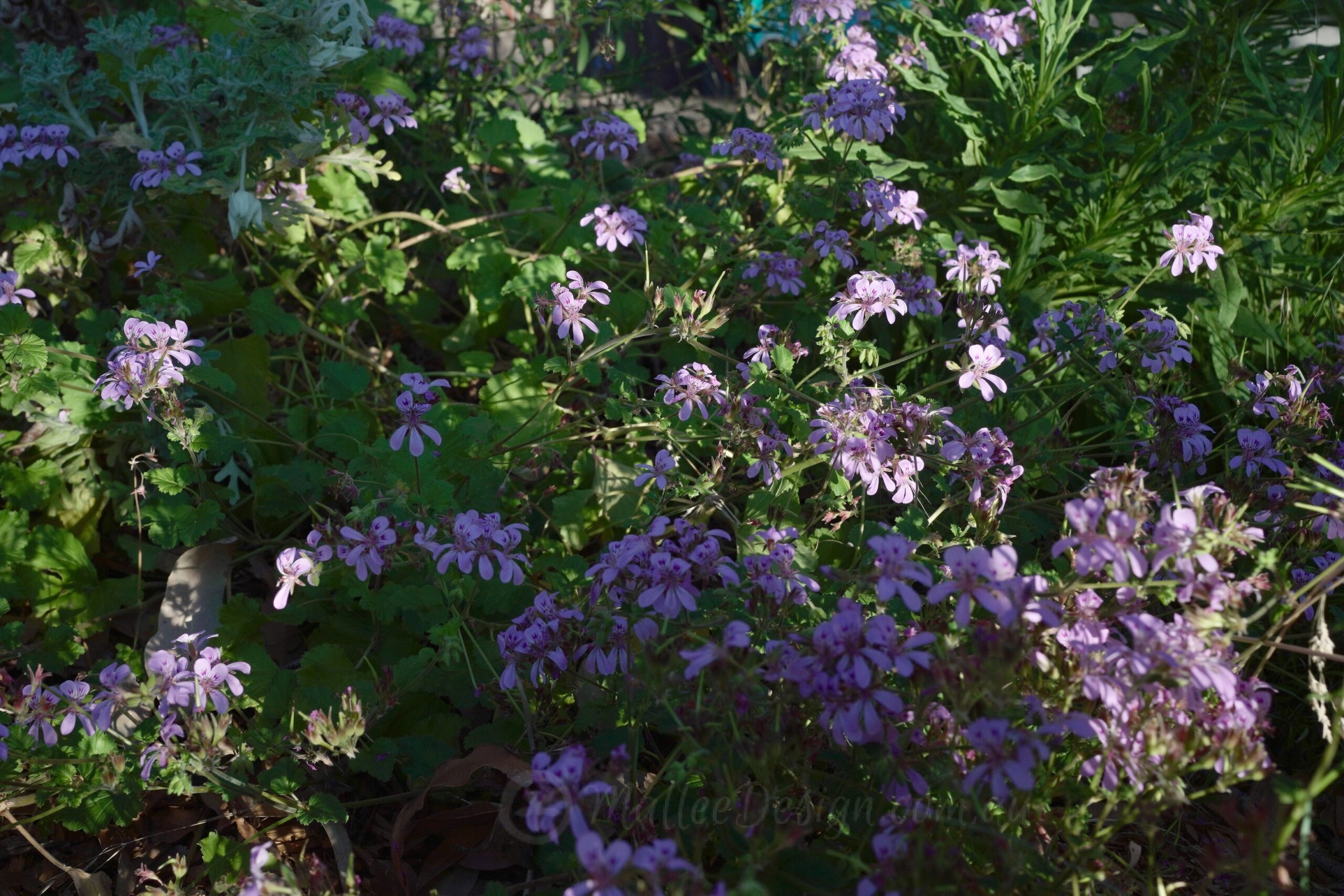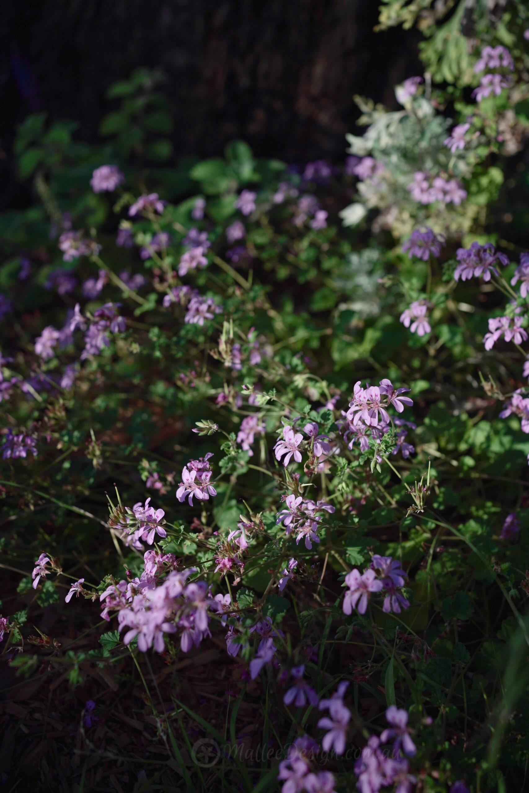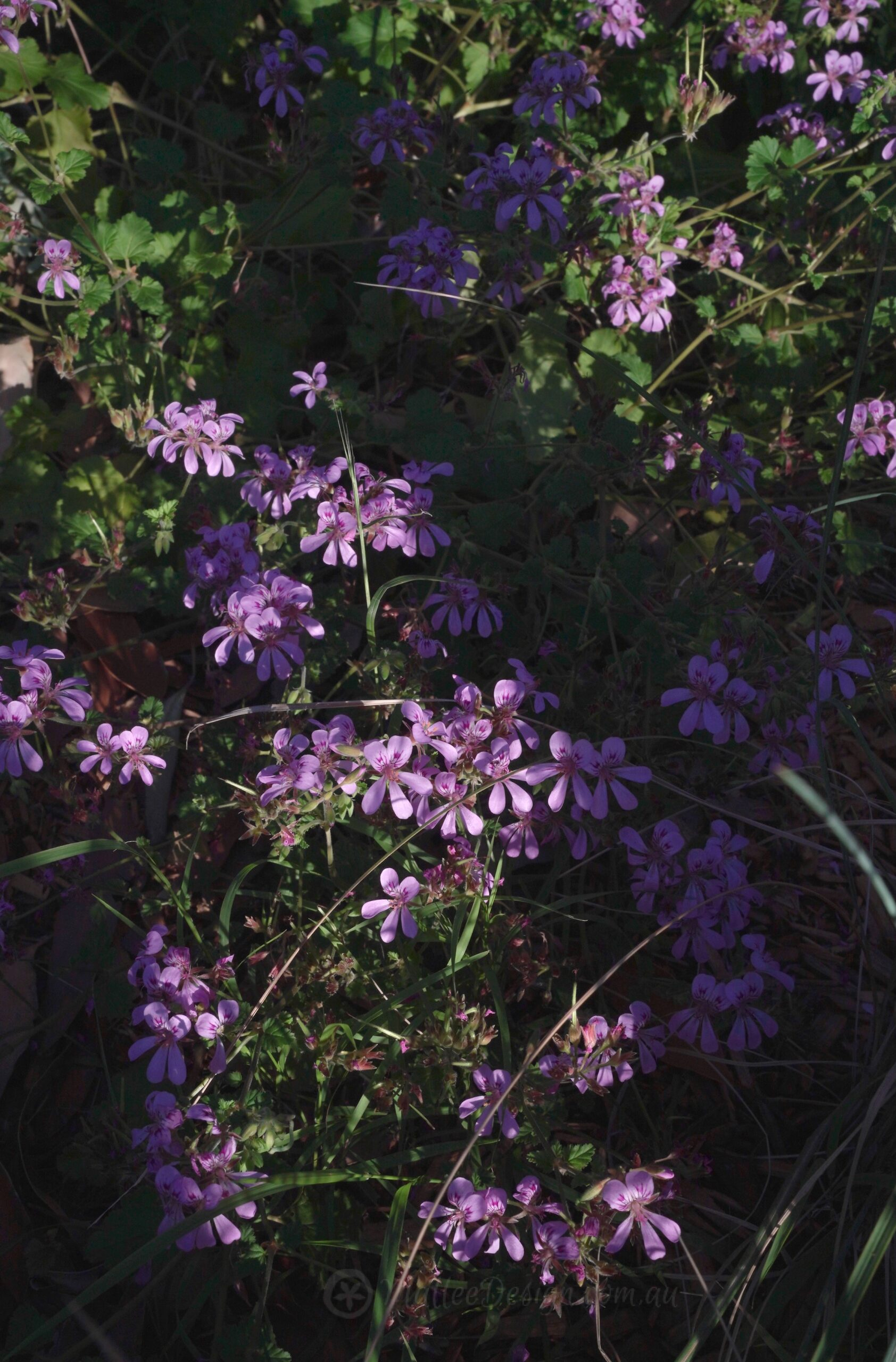 I am growing Pelargonium ‘Applause’ in an under storey planting in the part shade of my large Ironbark. It is doing a wonderful job of rambling around with some other native insect attracting natives, like Actinotus helianthii, Bracteanths species and Plectranthus graveolens.