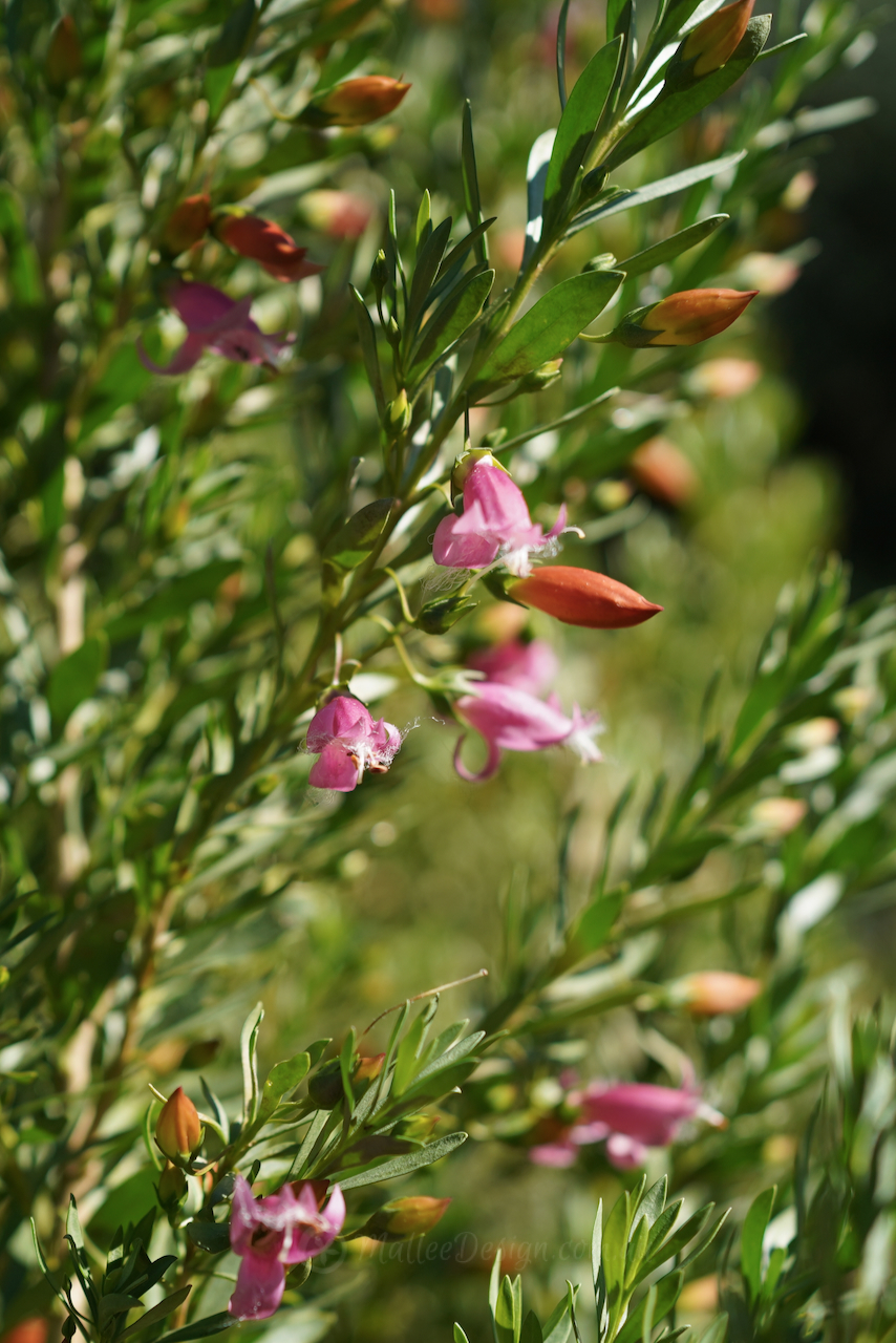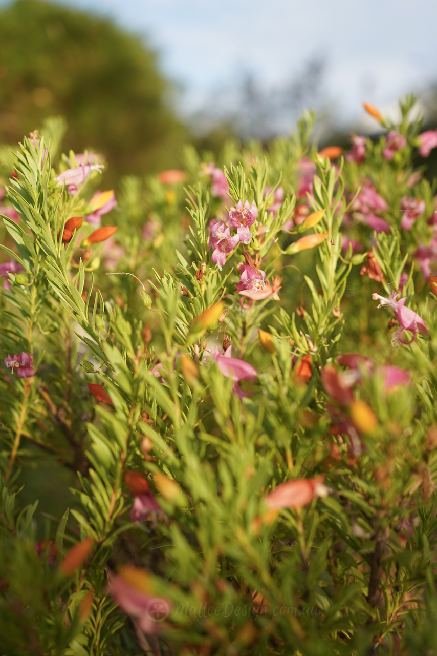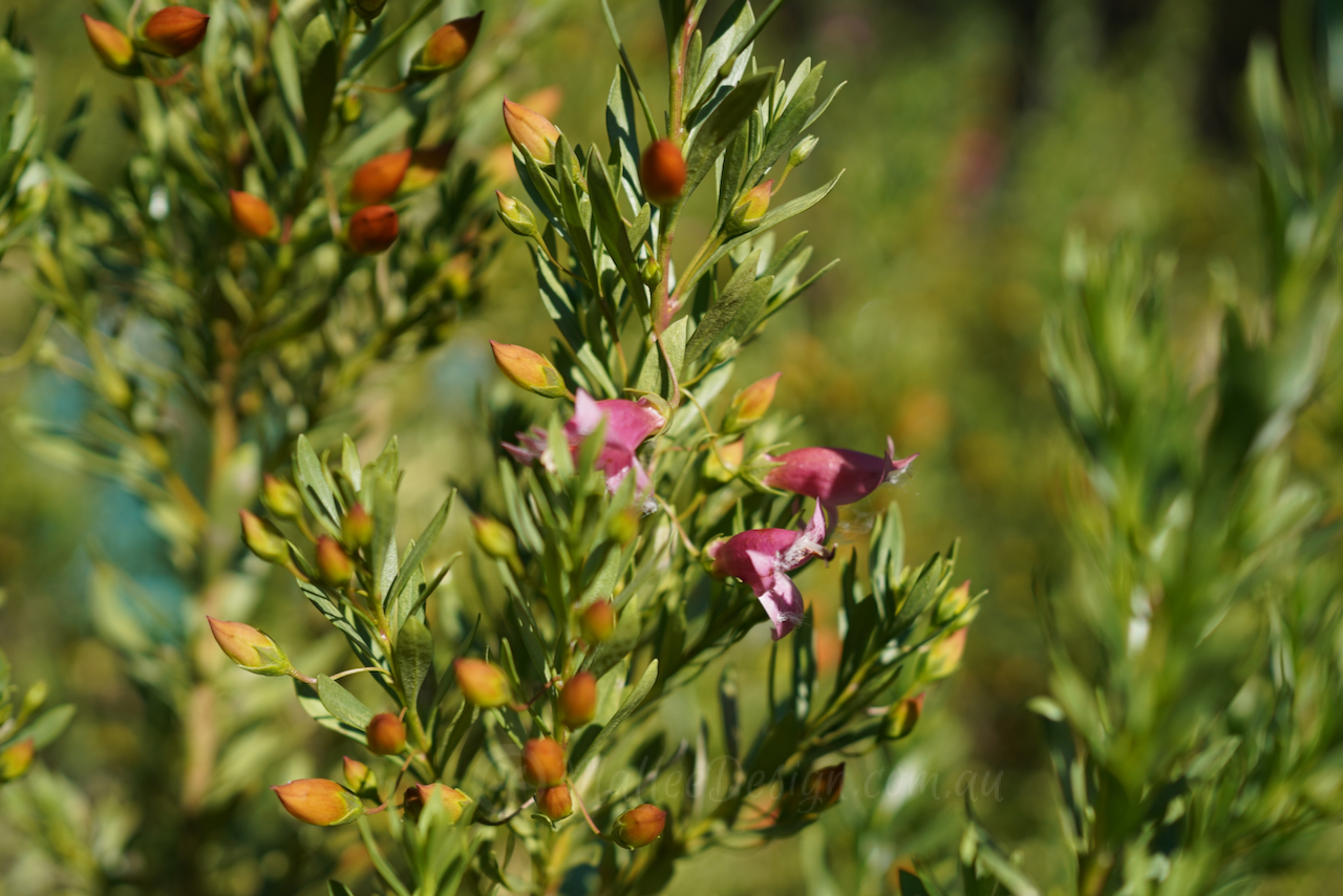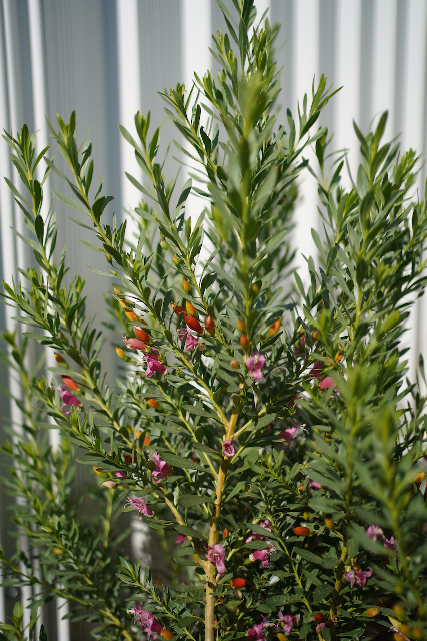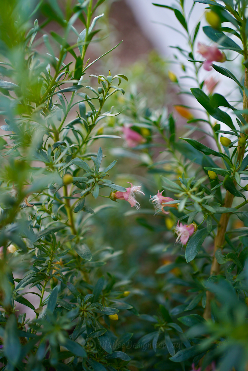 This Emu bush is always a great performer in a difficult postion, providing so my joy with its multicolured buds and blooms. I have been growing Eremophila ‘Fairy Floss’ for a number of years now and have found it to be particularly tough and hardy. What I didn’t realise was that it is a cross between racemosa and maculata (I thought only racemosa) so no wonder it is so resilient. One of the things I adore about ‘Fairy Floss’ is the varied colours of the buds, they begin yellow, then turn orange and then the flower opens to pink, this gives such a lovely array of colour through Winter and into Spring.