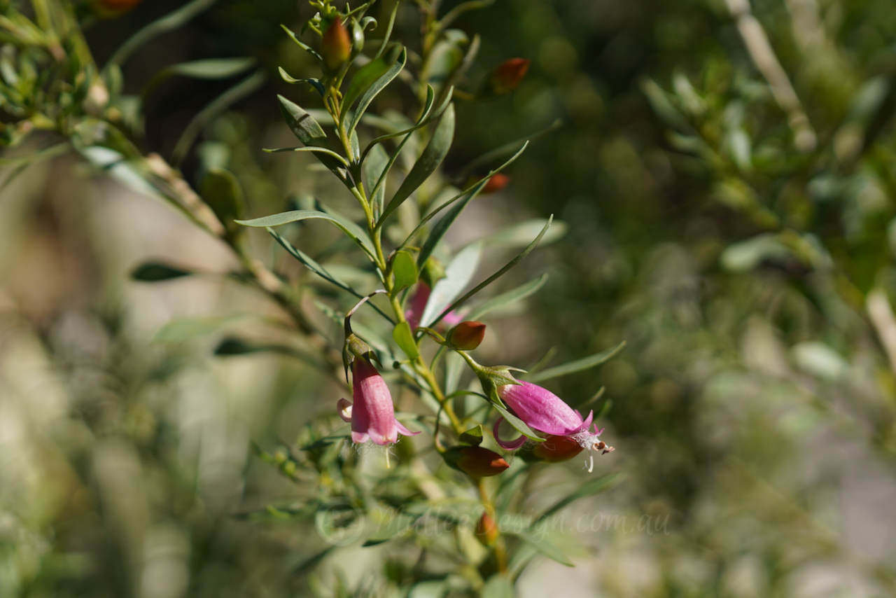 Flowering in late Winter into Spring and sometime Summer the yellow/orange buds burst into candy-pink tubular flowers with fine white cobwebby hairs, attributing to its common name ‘Fairy Floss’.