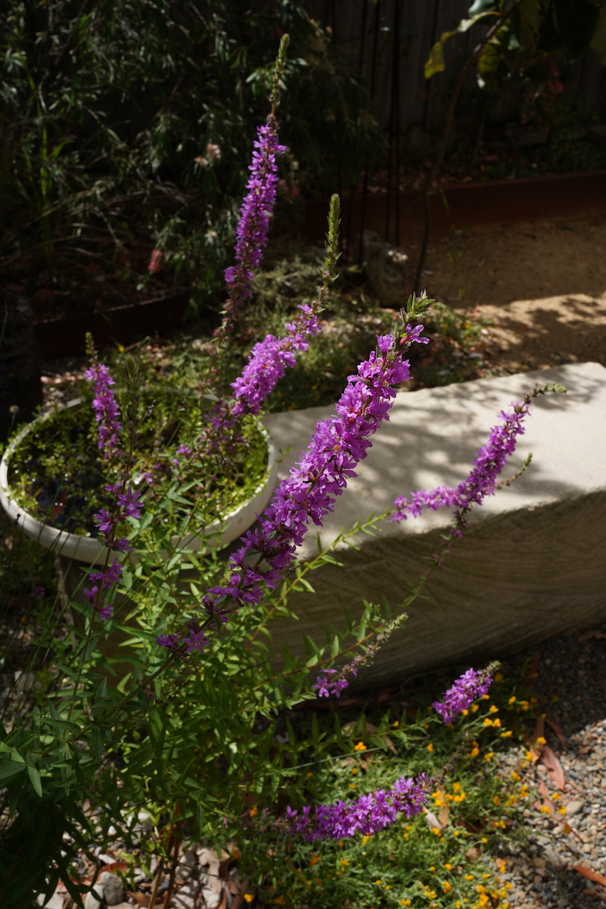This is a very fun native pond plant growing in my garden, currently flowering for its second summer. It’s called Lythrum salicaria, or Purple Loosestrife, and it’s an extremely satisfying species to grow thanks to its long flowering period and deep pink-purple flower spikes.
